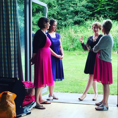 It wasn’t exactly raining men this evening but it was certainly on the damp side. We had a lovely time at Sonia and John’s wedding anniversary party. Next gig, 9th September, St Andrew’s Church, Great Cornard.